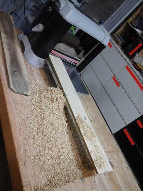 Hackerspace de TX/RX Labs tiene una carpintería con un cepillo de 13 pulgadas de Delta. Quería la madera recuperada para tener carácter adicional sin tratar de hacerlo también "recién cortado" en ambos lados por lo que había variadas piezas.