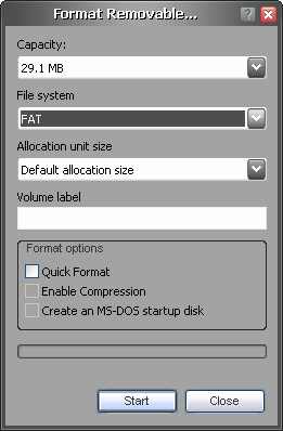 Seleccione FAT (no FAT32) como el sistema de archivos y formato.