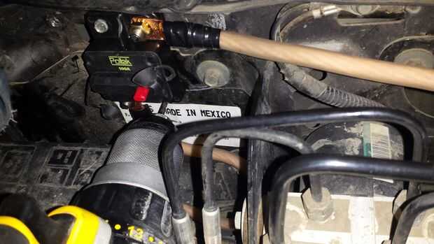 Se instala en el cable desde el positivo (+ rojo) terminal de la batería. Instalar lo más cerca a la batería como sea posible.