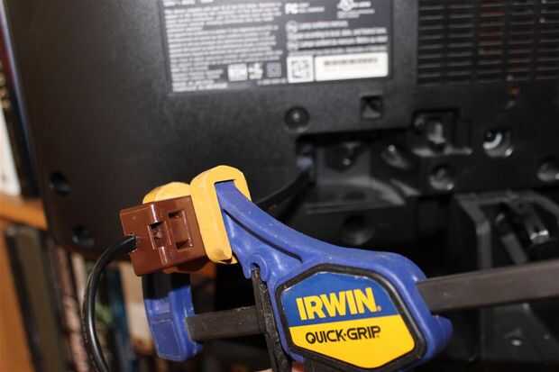 Cable de la TV es más pesado que un cable de luz estándar, así que utilicé una pinza de madera para asegurarse de que los dientes realmente penetraran y hacen una buena conexión.