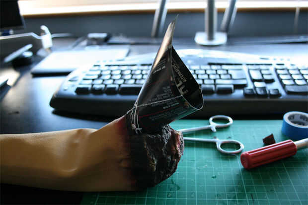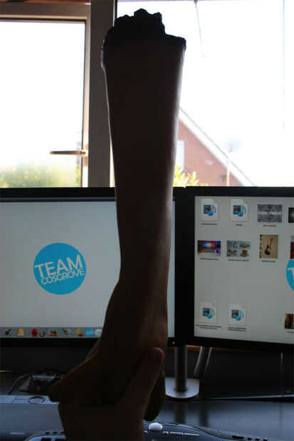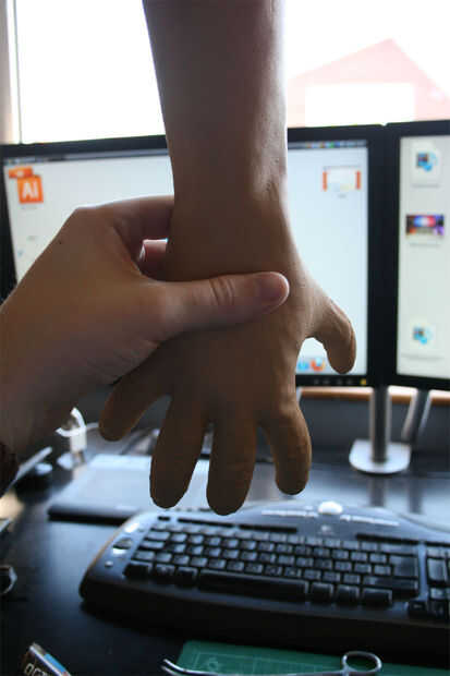 Una vez haya rellenado los dedos, deslice el tubo en el brazo que termina aproximadamente en la muñeca. Llene el tubo primero, asegurándose de que está totalmente llena antes de llenar el resto del brazo, o ese espacio extra significará una gran diferencia en otro en el brazo.
