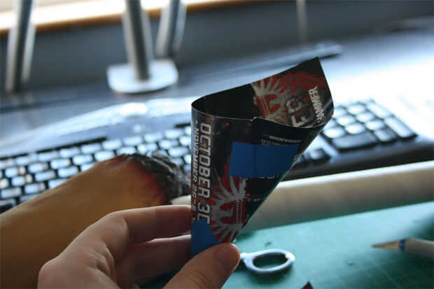 A fin que están llena de los dedos, dejé el tubo sobresalen parcialmente el brazo y poner encima el embudo. ¿Así, podría dirigir el flujo interno del grano para que todos los dedos y el pulgar tienen lleno, elegante eh?