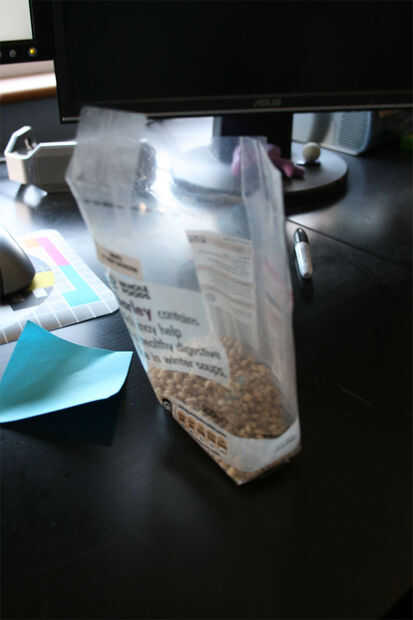 Mantenga el relleno del brazo, usando el embudo para que no derrame cebada perlada en todo el mundo. Descubrí que una técnica de goteo 4-5 granos a la vez de manera regular trabajada mejor que acaba vertiendo un montón y luego tener que sacudir y zarandearlos.