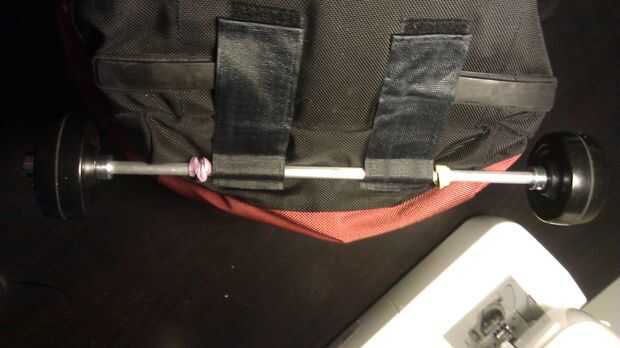 A menos que sucedió a una barra de metal perfectamente tamaño, debe haber alguna barra adicional extendiéndose más allá de una de las ruedas. Ahora usted debe tomar su bolso para una prueba de funcionamiento para asegurarse de que las ruedas están en el lugar correcto. Si no, ajuste, prueba otra vez.