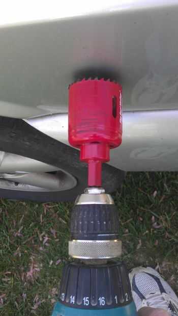 opté por poner la entrada en trasero cuarto lateral del conductor debido a fácil acceso a través del compartimiento del gato y quería que las salidas por ese lado. Uso que un 1-7/8" Sierras de perforar el agujero. Usted sólo quiere poner un agujero en su camioneta, así que asegúrese de tener la ubicación correcta y herramientas - y comprobar. Conecte un extremo de la romex e instalar la entrada de las instrucciones en el paquete. SÍ, EN ESTE PASO USTED ESTÁ TOMANDO UN AGUJERO VIO EL CUERPO DE SU COCHE - ¡ CUIDADO!