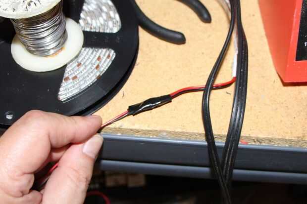 El primer paso real es averiguar donde será el final de su cadena de LED y luego agregar extensión cables para ejecutar el poder a su cadena de LED.