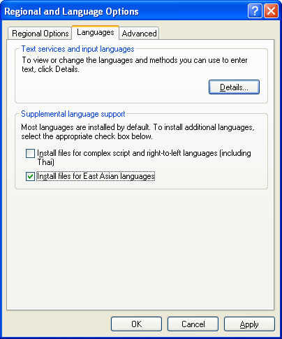 ensalta archivos para idiomas de Asia oriental". En el mensaje de cuadro que aparece se puede haga clic en Aceptar. Después el cuadro de mensaje, haga clic en "