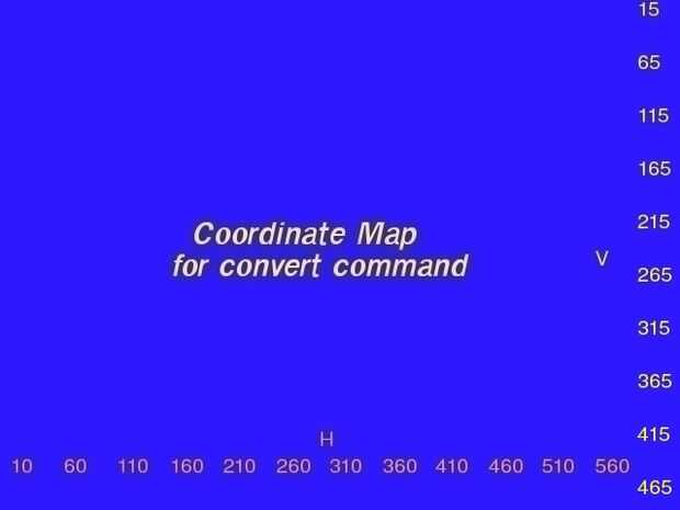 Puede puede utilizar el mapa de coordinar para las coordenadas horizontal y vertical aproximadas que se aplicarían a una imagen que es 640 x 480. El marcado en esta imagen fue creado mediante la utilidad convert.
