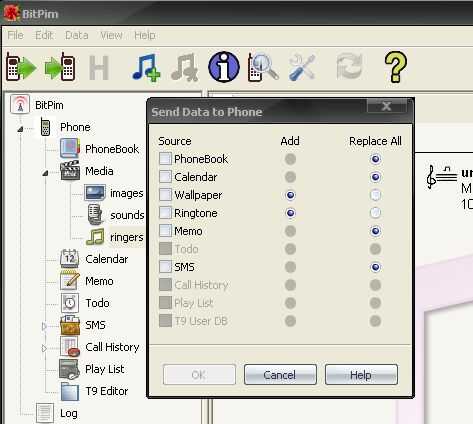 esta es la parte verizon no le gusta! Haga clic en sincronizar teléfono con botón de bitpim (upload). (el teléfono con la flecha en él) bajo fuente, compruebe el tono de llamada y lo de añadir. Haga clic en Aceptar.
