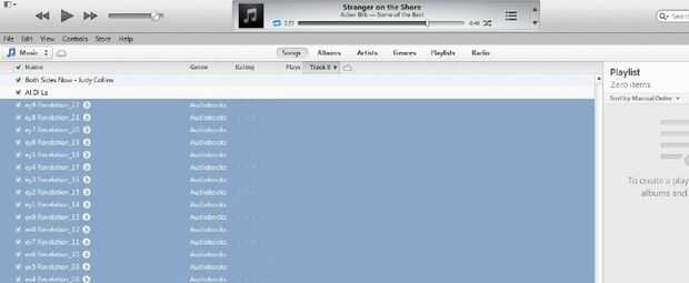 Desplácese hacia abajo en la biblioteca para encontrar los archivos que haya agregado. Izquierda haga clic en el primer archivo. Mantenga pulsada la tecla Mayús y entonces oprimir la tecla de flecha hacia abajo. Resaltar todos los archivos que forman parte del audiolibro. No te preocupes si el orden de los archivos es desordenado. Serán fácilmente tratados más adelante.