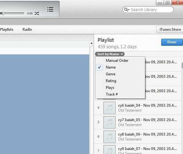 Doble a la izquierda haga clic en lista de reproducción y la lista de reproducción su propio nombre. Yo estoy dándole el nombre "Biblia en inglés." Izquierda haga clic fuera del cuadro de nombre y aparece el botón hecho. Clic izquierdo sobre él.