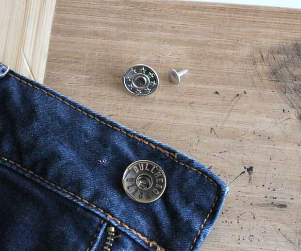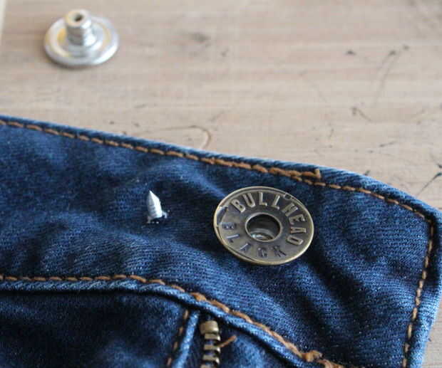 Ahora querrá empujar el respaldo hacia el botón a través de la parte delantera de la pretina.