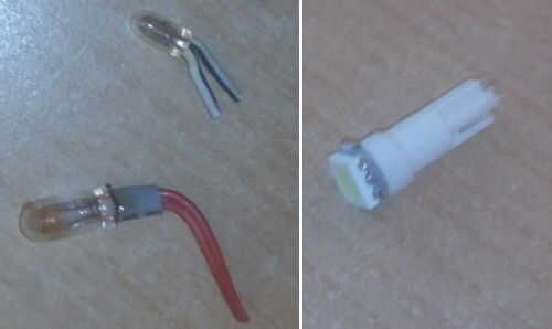 Como la radio estaba abierta decidí cambiar la vieja luz de fondo de los botones y pantalla. He utilizado luces de LED de 12V en ebay.