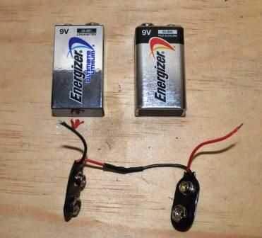 2. luego debe conectar juntos los terminales de 9v. Soldar y usar del encogimiento del calor para asegurarse de que están cubiertos todos los cables pelados. Conecte el terminal. No añadir las baterías aún, duele Si haz sorprendido por 18 voltios!