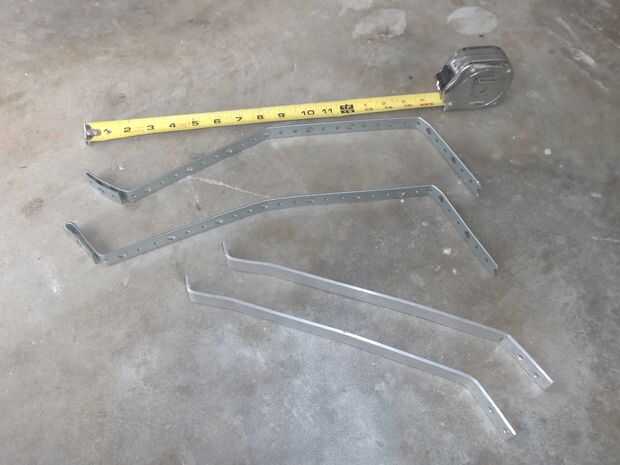 Corte a la longitud. Luego de la curva para las monturas de bicicleta entonces medir, marcar y doblar para el portaequipajes. Corte el exceso de las correas. Hice uno y luego copiarla para la segunda. Taladrar los agujeros para los tirantes.