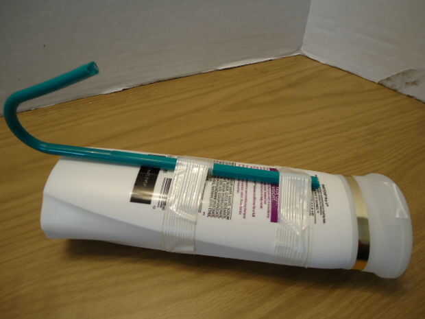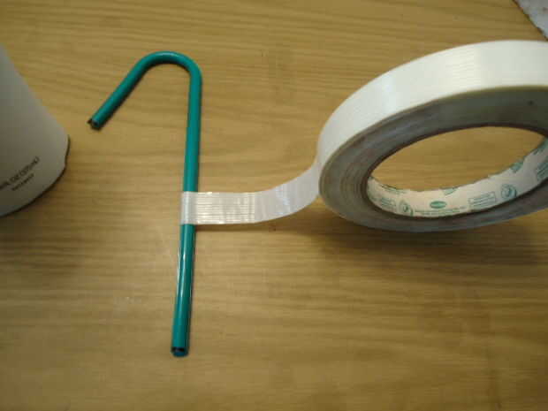 3. cinta adhesiva la parte inferior del gancho alrededor de la botella varias veces.