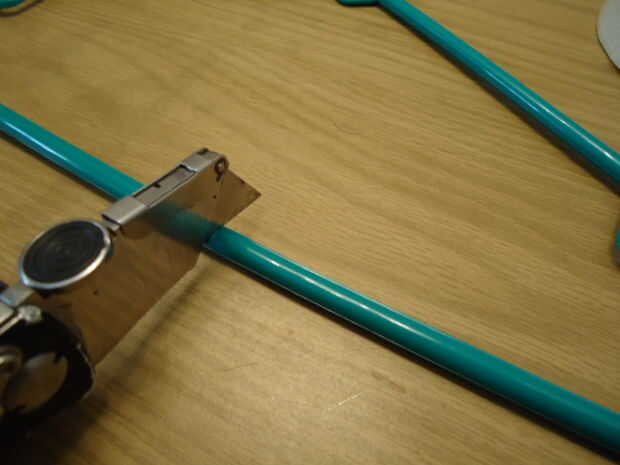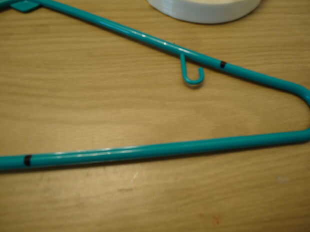 1. simplemente cortar la percha con el cuchillo en las marcas que se muestran. No necesita cortar la suspensión completamente sólo grabado firmemente en la marca y ajustar la suspensión aparte.