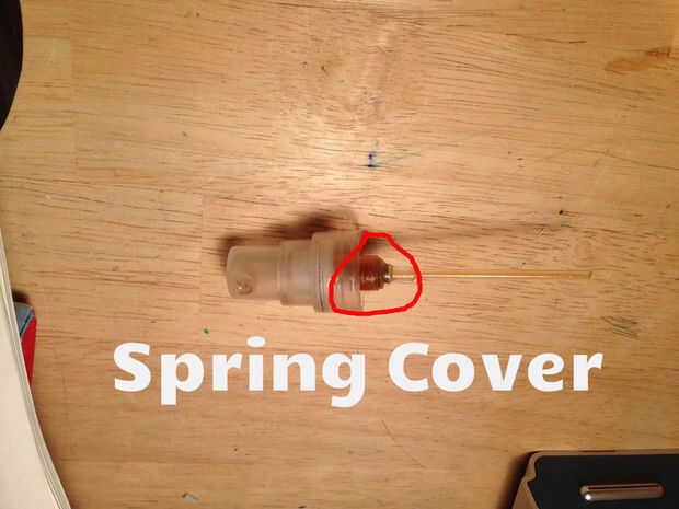 Ahora, utilizando sus pinzas, mida el diámetro de su cubierta de actuador de resorte y nota en algún lugar, mina terminó siendo alrededor de 3/8". Ahora, ya que nosotros estamos perforando un agujero más o menos el tamaño de la cubierta, es necesario convertir cualquier medida que había en 1/16". Mina fue perfecta, ya que 3/8" es de un tamaño de pedacito de taladro.