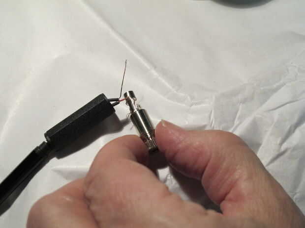 Entonces, su caso jack del hilo de rosca sobre los cables y empezar a soldar.