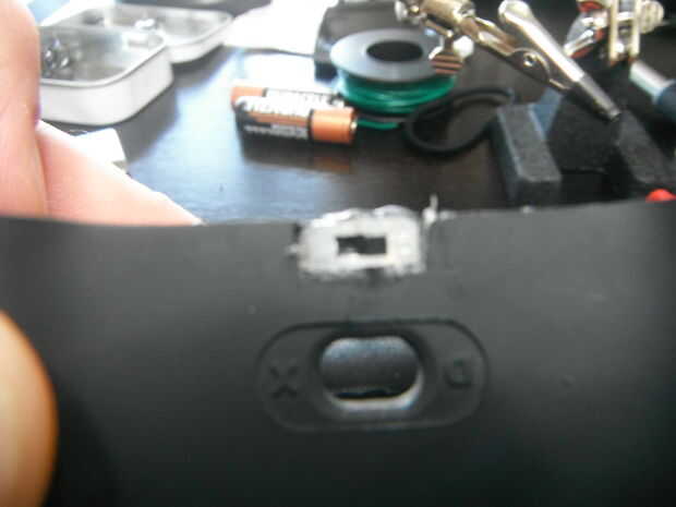 Un poco de pegamento caliente en el interruptor será sujetarlo muy bien. Una vez que se haya enfriado, recorte al extra con un cuchillo de la manía.