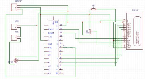 Si no sabes cómo conectar el cable USB con el transistor y el ventilador, puedes echar un vistazo en el esquema.