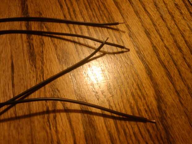 que utiliza un cable de conexión automóvil calibre 18 desde el almacén auto local para este paso. Mi bici tenía dos palancas de freno, así que corte los dos cables lo suficientemente largos para reunirse con los de la otra palanca en el vástago de la bicicleta. Recorte 1/4" de aislamiento de cada extremo usando un pelacables. Alimente el alambre por el orificio en uno de los conductores del interruptor va desde el interior hacia el exterior. Una vez, doblar la sección pelada por la mitad y luego la soldadura al cable. Repita con el otro cable. Uso tubo termocontraíble por que simplemente se coloca sobre la conexión soldada y corte dos longitudes de 1/2" de la misma. Deslizarse uno sobre cada cable hasta que cubren el área soldado y utilizan una pistola de calor para encoger de la tubería en su lugar. Use un pedazo más grande de calor tubo que sólo encaja en ambos cables en el interruptor y corta a 3/4" longitud de termoencogible. Deslice sobre ambos cables hasta colillas contra el interruptor y use la pistola de calor para encogimiento en lugar. Ahora envuelva los dos cables en cinta eléctrica para mantenerlos juntos y protegidos. Atornillar el interruptor en la palanca de freno. Eso es todo. Ahora depende de usted para averiguar cómo desea conectar una luz de freno. Este tutorial cubre solamente hacer el interruptor del freno.