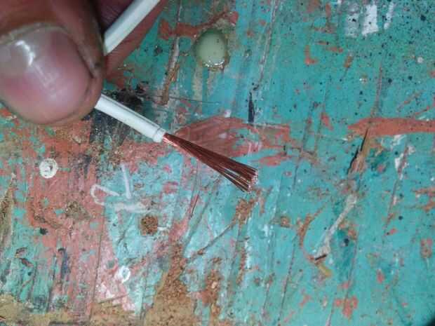 Para que se envuelva alrededor de los tornillos de terminal mejor, (como se muestra en la diferencia en la alineación de los filamentos individuales entre la foto 3 y 4) pellizcar el extremo de los filamentos expuestos y girar juntos.