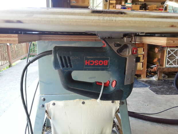 Tengo la idea para esto como que estaba construyendo una mesa de fresadora con bisagras para mi sierra de mesa. Quería poder tener una plantilla de tabla que sería capaz de usar mi mesa Sierra Guía para cortes. Con la mesa de la fresadora en el lado derecho, ¿por qué no usar el lado izquierdo una sierra de vaivén (como la hoja puede ser quitada rápidamente y fácilmente)?