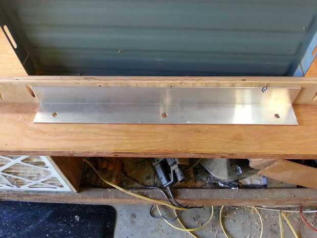 Similar al proyecto de tabla de router, he comprado 2 "x 2" x 4 "aluminio ángulo soporte de Lowe y corte en tres piezas para montar a la Sierra de mesa. Donde allí fueron existiendo agujeros de montaje, usaron. Donde no hay agujeros, perforé los nuevos. El lado izquierdo de mi sierra de mesa es más corto que el lado derecho, así que me aseguré de que tenía tres tornillos para fijar los soportes izquierdo y ángulo recto. Asegúrese de que su guía todavía se desliza suavemente después de montar los soportes en ángulo.