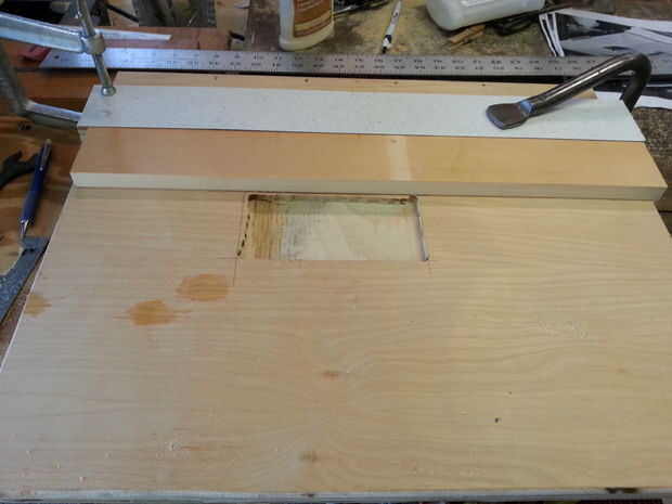 Me decidí a empotrar en la Sierra de vaivén de 1/4" de similar al proyecto de tabla de router (esto permite que más de la cuchilla sobresale a través de y da mayor profundidad de corte).
