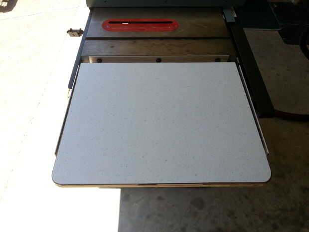 Quería que la plantilla del disco en el centro de la mesa, y quería que la hoja que se está enfrentando la parte delantera de la Sierra de mesa. Después de comprobar y segunda verificación, localicé la posición de la hoja (por desgracia no era el centro de la mesa como no había suficiente espacio en el lado izquierdo) y luego se retira la tapa para seguir trabajando.