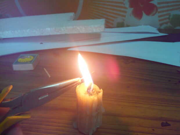 > Con los alicates, mostrarlo en la llama para calentar para arriba