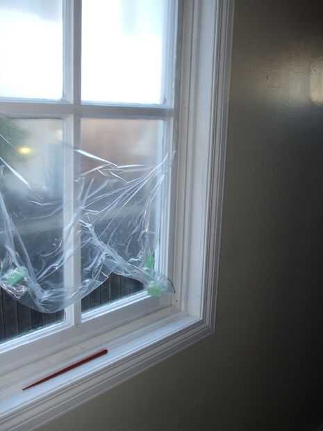 Para mejorar las propiedades de aislamiento, usé corta tiras de cinta de espuma de doble cara para sujetar el panel de nuevo en el marco de la ventana original (menos conducción). Una vez el acrílico en su lugar, guías con masilla alrededor del borde del panel y el marco, para evitar el movimiento del aire desde el interior caliente y húmedo en el boquete de aire entre el vidrio y el acrílico.