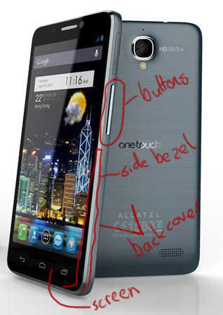 Más hoy en día los teléfonos Android están construidos de 3 diferentes partes exteriores: La pantalla de cristal, El bisel de la pantalla, El bisel lateraly la Cubierta trasera. Algunos teléfonos no tienen un bisel lateral, algunos no. Ver las fotos anteriores para referencia.