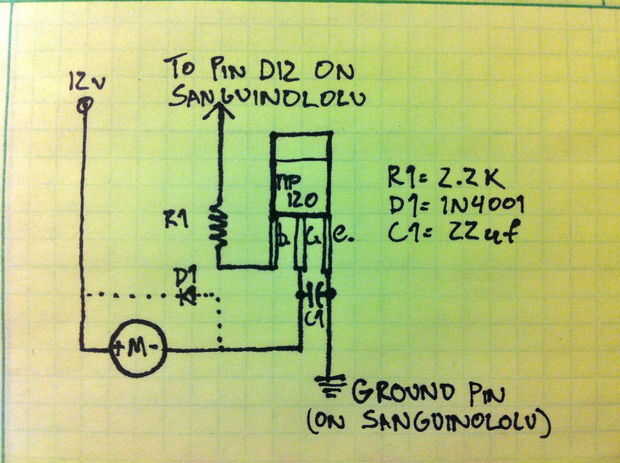 Enchufe los + 12v, tierra, cables y D12 en la posición correcta como se indica en el diagrama y conecte el otro extremo de las clavijas correspondientes de su Sanguinolou. Encienda la impresora y software correspondiente y tipo S255 M106 en la línea de comandos G-Code, ventilador debe comenzar cuando se envía el comando. Escribir M106 S0 debe apagar el ventilador. Puede introducir cualquier valor entre 0 y 255 después de S, y se fijó su ventilador a la velocidad correspondiente. Si no ganas de tratar con el software, simplemente conectar 12v y cables de tierra desde una fuente de alimentación como de costumbre y conectar el cable de 5v de la fuente de alimentación a la resistencia, esto al menos le hará saber todo es conectado bien.