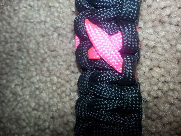 necesita alicates, a menos que primero quemar los extremos de la paracord. Un brazalete de paracord de armadura de cobra. La última cosa que necesitará es una pieza rosa de paracord.Paso 1: Todas las instrucciones están en las fotos.Paso 2: Ahora que