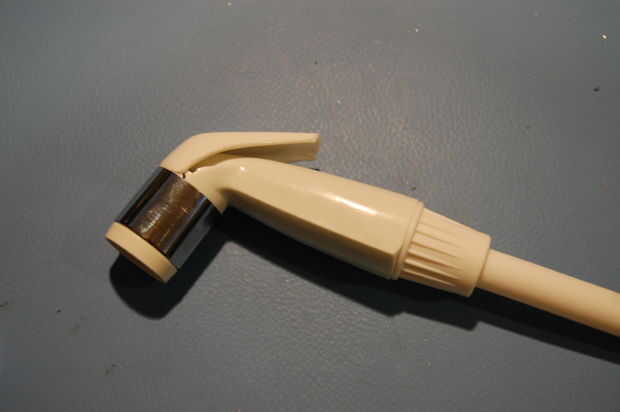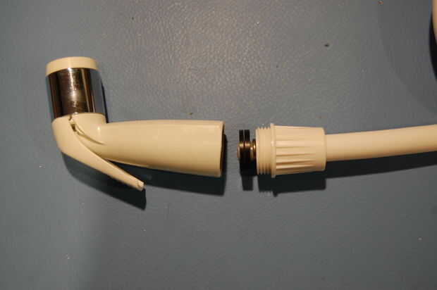 Por último, atornillamos la cabeza del rociador en el otro extremo de la manguera del rociador.