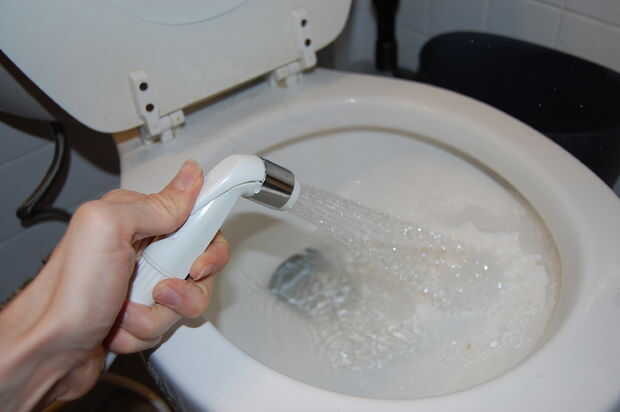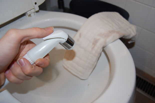 Utilice el pulverizador es bastante sencillo. Simplemente mantenga el pañal poopy dentro de la taza del inodoro y aerosol. Siempre apunte hacia abajo y desde la parte superior hasta la parte inferior. Puedes usar guantes, pero yo no. Sólo lavo las manos después he terminado.