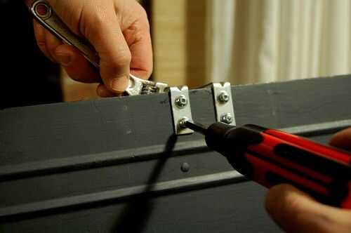 Retire las llaves de la luz, a continuación, fije el soporte usando los tornillos, plana y arandelas y tuercas. El siguiente paso se muestra cómo todo va en.