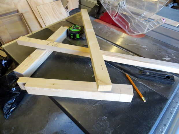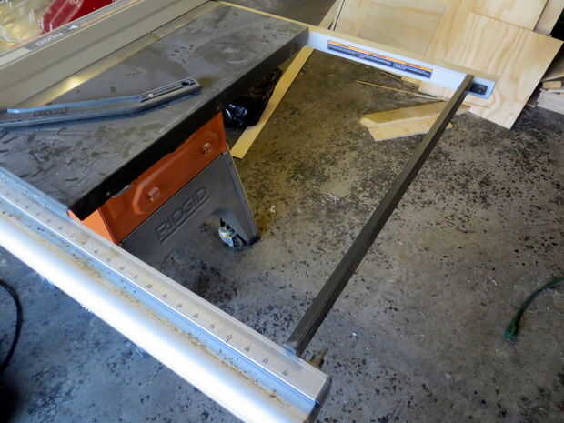 Medir el tamaño del agujero en la extensión de la mesa y el tamaño de la tabla. Para mí, las dimensiones eran 687 × 370 mm y 605 × 363 mm, respectivamente. Eso significó necesario ampliar la tabla de 41 mm a cada extremo, pero no necesita hacer nada en los laterales excepto proporcionar apoyo. Así que hice un marco cortando dos piezas largo flacos 22 × 38 × 687 mm y dos piezas cortas de grasa 38 × 41 × 370 mm, y cortando un descuento al final de cada uno de los pedazos de extremo tal que el marco era de 44 mm de alto y las piezas flacas fueron exactamente 18 m m (el grueso de la tapa de tabla) más bajo que los pedazos de grasa.
