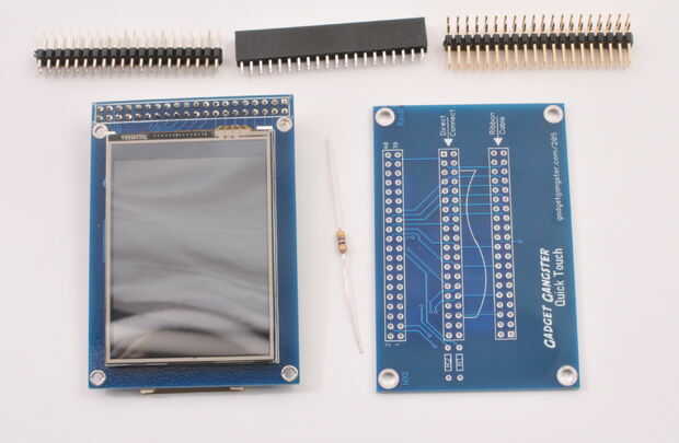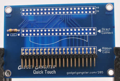 He diseñado un tablero de arranque para que sea mucho más fácil para conectar la pantalla táctil, tiene headers para conectar la pantalla directamente a la Junta Directiva junto con headers para conectar un cable de cinta IDE de 40 pines. El tablero de arranque viene con el kit, pero usted puede grabar usted mismo con los archivos de diseño (diptrace). Usted también podría encontrar el esquema (pdf) práctico.