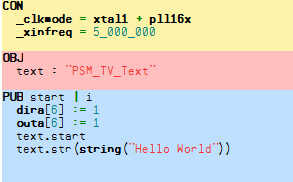 La siguiente línea comienza la pantalla y el objeto de PSM_TV_Text documentos todas las funciones disponibles; Tienes text.str para mostrar una cadena, text.newline para mover el cursor a la línea siguiente y así sucesivamente.