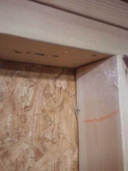 A lo largo de este proceso, seguir colocando el marco de la ventana en la abertura para asegurarse de que no esta haciendo nada loco. Durante una de estas pruebas, me di cuenta de que la viga derecha no es recta. No quiero arreglarlo, pero no quiero cortar el agujero para seguir el perno, por lo que he marcado donde quería esa esquina del agujero para ser.