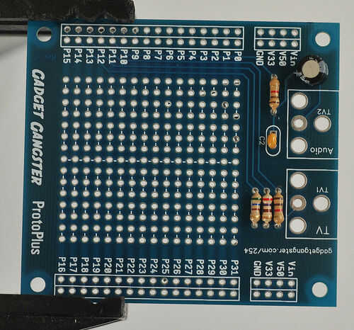 C1 es el condensador electrolítico de 47uF. SE polariza, el cable más largo va a través del orificio cuadrado más cercano a la '+'. La franja en el cuerpo del condensador va en el lado más cercano al borde de la Junta.