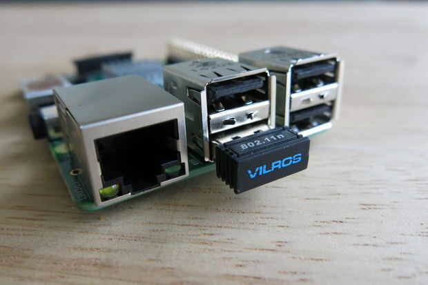 Inserte el WiFi Dongle ranura del USB de la Pi