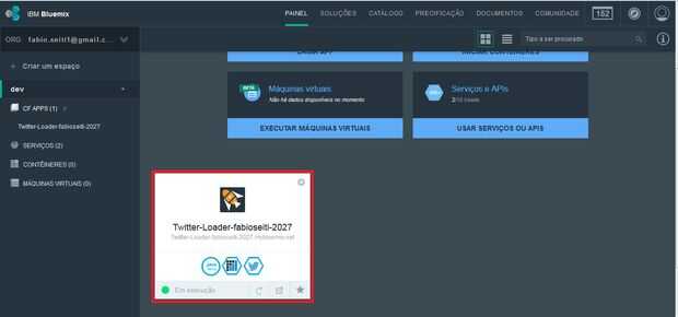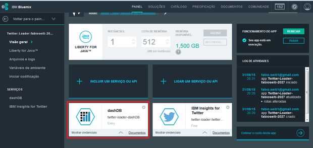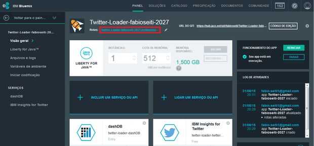 Para insertar tweets, ir a su página web. Si no sabes la URL, ir al dashboard Bluemix, haga clic en su aplicación. Esto redirigirá a la página de su proyecto. En esta página, un enlace a la página de la aplicación estará disponible.
