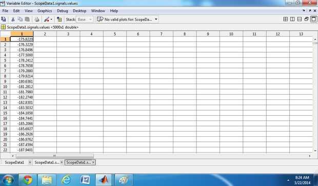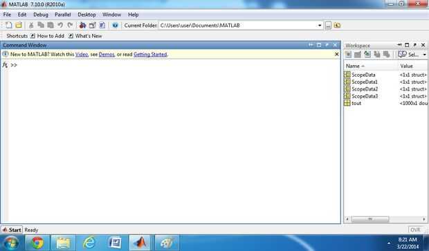 1) en la Página principal de Matlab en el espacio de trabajo están disponibles los datos del alcance.