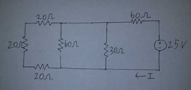 Respuestas: Req = 75 ohmios, I = 1/3 A