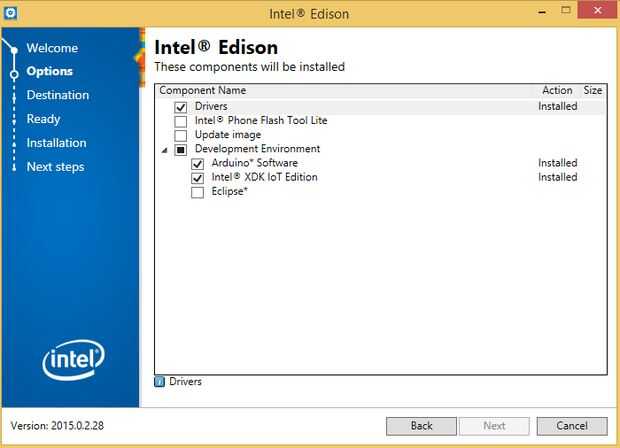 Deberá instalar controladores IDE de Arduino y Intel XDK.