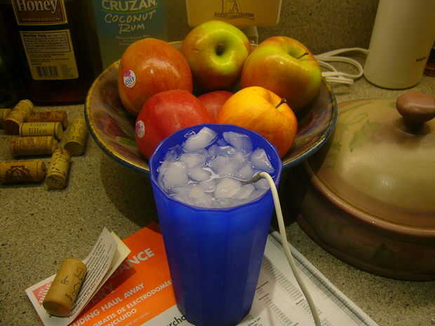 Se tomaron 5 mediciones. Hielo se vierte en una taza y luego llenó de agua. Entre cada medición, el agua fue vertida fuera, fue coronado el hielo y el agua rellenada.